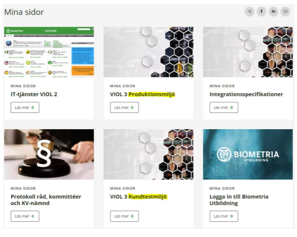 Det är via ”Mina Sidor” du beställer användare och behörigheter i VIOL 3. Om ni inte har en behörighetsansvarig i VIOL 3 sedan tidigare, skickar du ett mejl till support.viol3@biometria.se med rubriken "Behörighetsansvarig - företagsnamn".