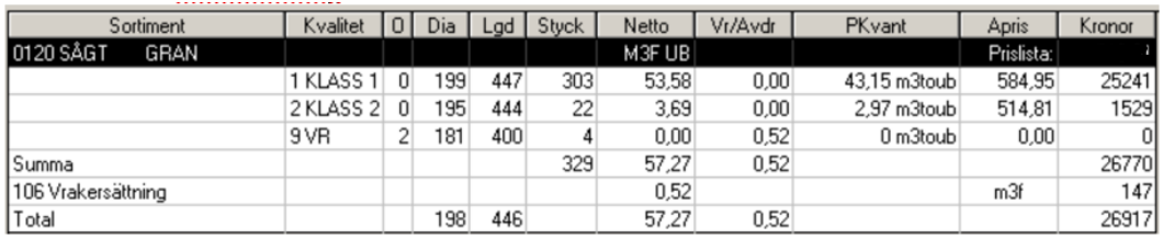 - Redovisningsnummer är inmätt på Ala-sågverk, mätts med dataklave eller med MAS