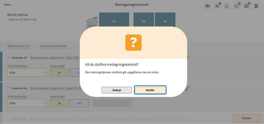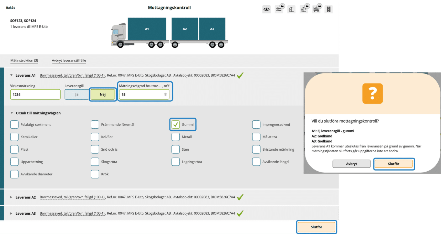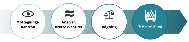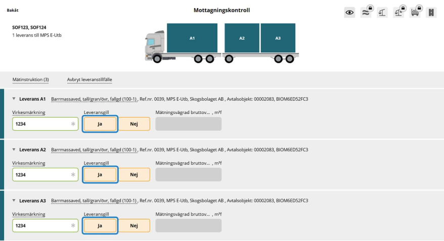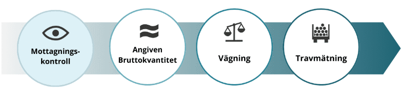 Mottagningskontrollen kan antingen utföras av dig som virkesmätare eller av en behörig chaufför förutsatt att mätningsflödet tillåter det.