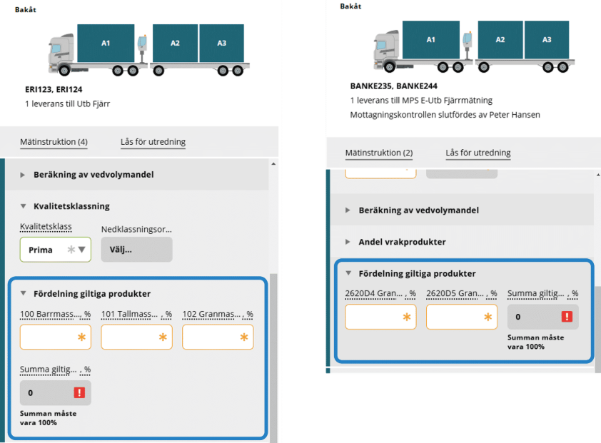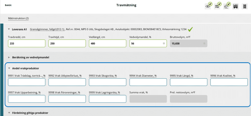 Om traven innehåller vrak registrerar du det i sektionen Andel vrakprodukter.