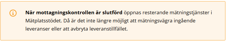 När en leverans inte är leveransgill ska, den mätningsvägras i Mottagningskontrollen.
