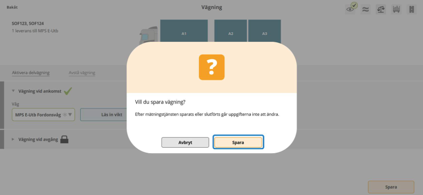Spara vägning - bekräfta att uppgifterna är korrekta