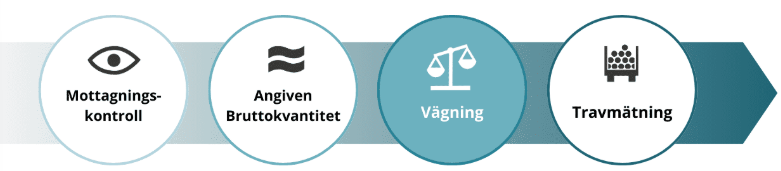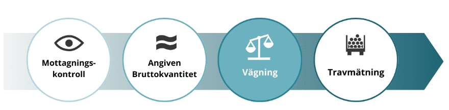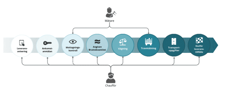 Godkännande av vägning vid ankomst kan utföras antingen av virkesmätare eller chaufför, beroende på vad flödet tillåter.