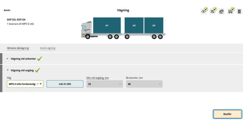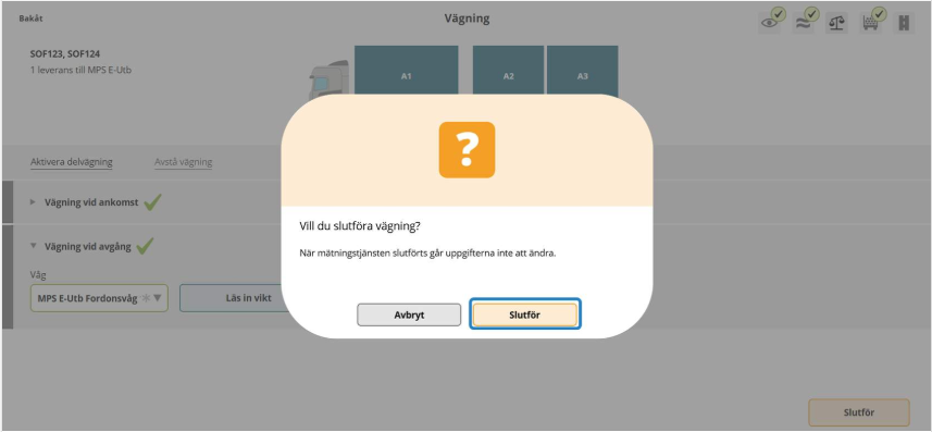 Slutför vägning – bekräfta