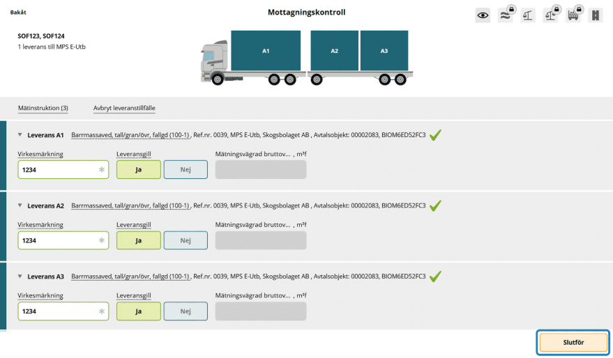 - Klicka på ikonen Slutför leveranstillfälle.