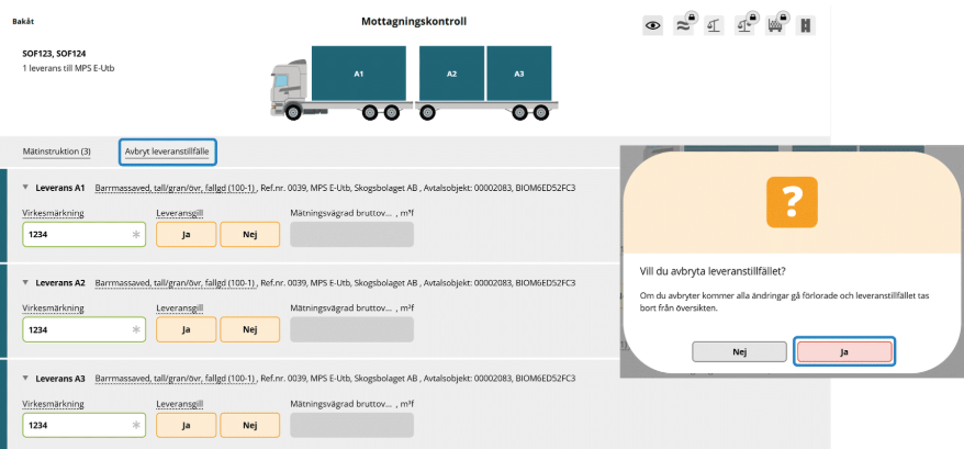 - Klicka på Avbryt leveranstillfälle.