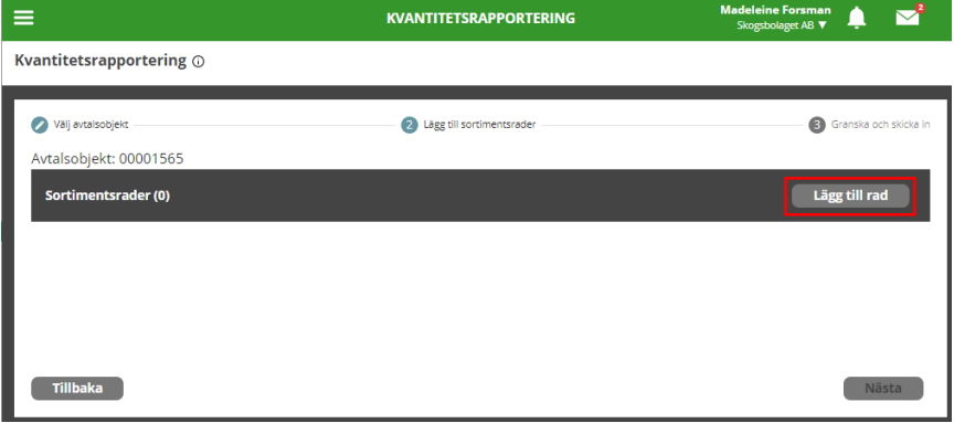 För att kunna genomföra en kvantitetsrapportering via integration behöver det finnas ett aktivt och giltigt förstaledskontrakt och avtalsobjekt. I förstaledskontraktet ska det inte vara ifyllt att avtalsobjekten avser industri. Avtalsobjektet måste vara aktivt och giltigt samt innehålla sortimentsrader. Om avtalsobjektet innehåller sortimentsrad på sortimentskategorinivå går det att kvantitetsrapportera på de handelssortiment som ingår i den sortimentskategorin. Om avtalsobjektet innehåller sortimentsrad på handelssortimentsnivå går det att kvantitetsrapportera på det handelssortimentet. Om avtalsobjektet inte innehåller någon sortimentsrad går det inte att kvantitetsrapportera. För att logistikinformationsmottagaren ska kunna ta del av kvantitetsresultatet måste den finnas angiven på sortimentsraden vid det tillfälle
