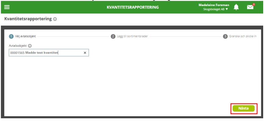 3. Efter att ha valt avtalsobjektsnummer, tryck på Nästa.