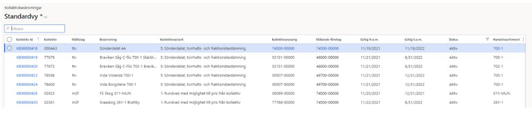 Vilka kollektivbeskrivningar kan jag se i listan över kollektivbeskrivningar?