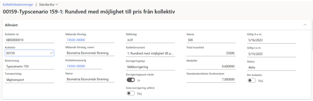 Samma kontrakt kan användas både till flöde som stockmäts och annat flöde som mäts med kollektiv. Kontraktets “pris från kollektiv” kan inte ändras i aktiverat kontrakt. I följande fall är det därför befogat att sätta den till ja för ett stockmätt flöde trots att parametern i det flödet saknar betydelse.