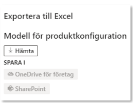 Standard- och priskomponenter kan exporteras till Excel på följande vis; Öppna aktuellt formulär. Gör önskade filtreringar i de kolumner som önskas. Önskas ytterligare information, som inte finns tillgänglig i Standardvyn, kan uppgifter tillföras. Det är endast uppgifter som finns tillgängliga på huvudnivå som kan tillföras. Information om värde- och urvalsvillkor kan inte tillföras.