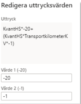 Ange uttrycksvärden -20 i den fasta delen (värde 1) och -1 i den rörliga delen (värde 2).