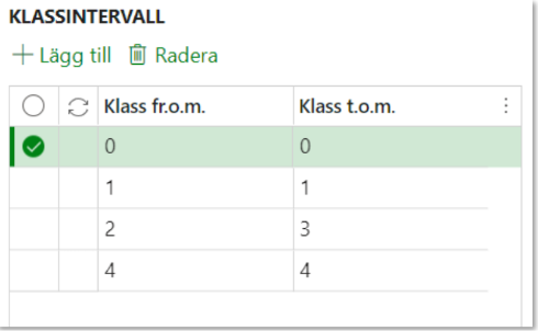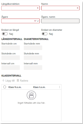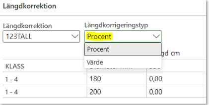 Ange klass i prismatris eller längdkorrektion