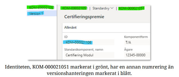 Identiteten, KOM-000017204, tilldelas automtiskt av systemet och är samma i status Preliminär som i Aktiv-version 1.