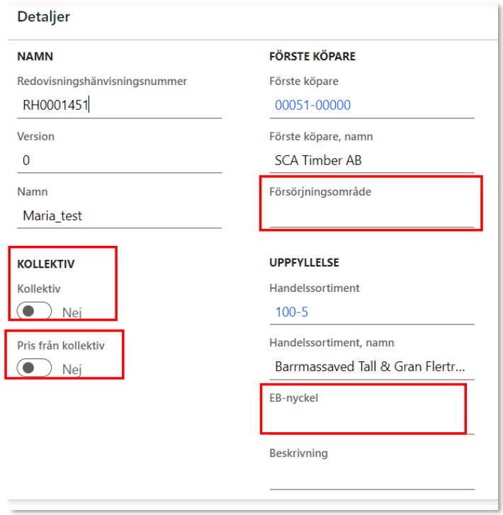 - Om Ja: välj huruvida pris från kollektiv ska användas under rubriken Pris från Kollektiv. Detta är till för kollektivvariant 1, timmerkollektiv då leden i kontraktskedjan måste stämma överens med leden i kollektivbeskrivningen.
