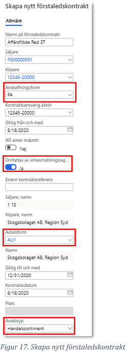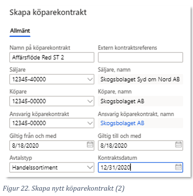 I exemplet nedan används de fiktiva bolagen Skogsbolaget AB samt Skogsbolaget region öst som köpare och säljare.