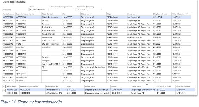 Vid skapandet av kontraktskedjan, ange de tidigare skapade köparekontrakten. När en kontraktskedja så börjar affären att bindas ihop. För mer detaljer se Handbok Kontraktskedja.