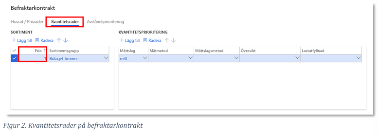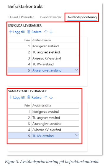 - Avstånd- och kvantitetsprioriteringar ärvs ned från befraktarkontraktet till alla efterkommande led i transportaffären.