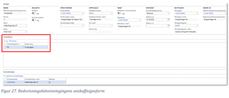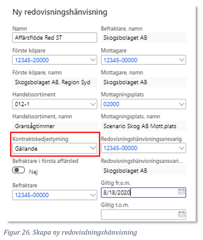 Ange destineringsansvarig för affären, i detta fall är det Skogsbolaget AB (12345-00000)