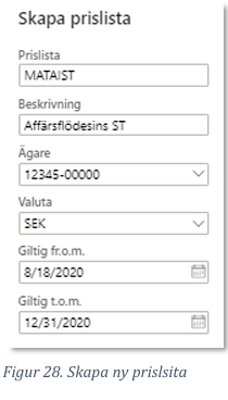 - Skapa en Prislista och lägg på kontraktsraderna i respektive kontrakt.
