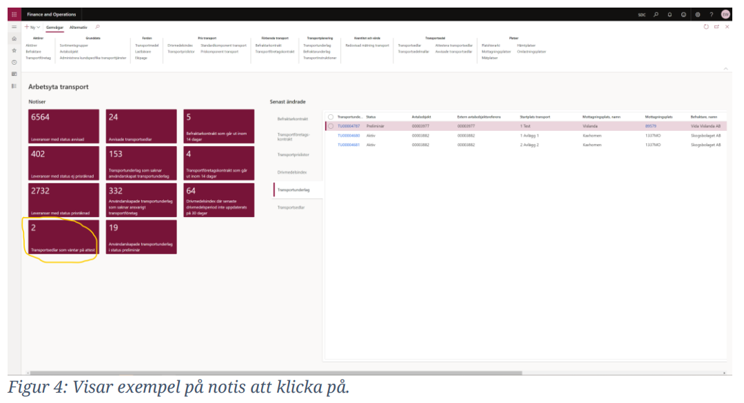 Du kan använda notisen till att hålla koll på att alla transportunderlag som ska vara aktiverade faktiskt har blivit aktiverade. |