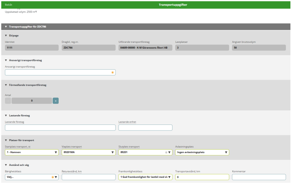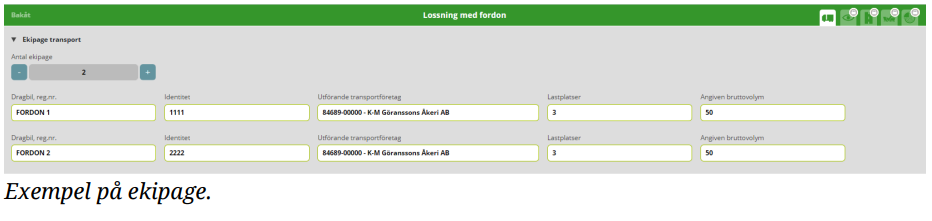 Ange transportuppgifter för varje ekipage