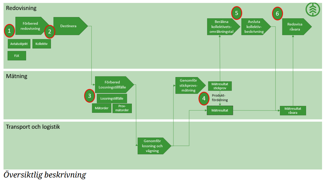 Det som utmärker mätningsprocessen är att de ersättningsgrundande* mätresultaten INTE får skickas innan samtliga stickprover är mätt. Detta arbetssätt ska säkerställa att kollektivet har ett korrekt omräkningstal innan ordinarie mätresultat redovisas. *Not. Den ersättningsgrundande mätningen är den mätningstjänst, i mätningsflödet som innehåller produktfördelning och har måttslagskvalitet 1 eller 2. Så syftet med denna instruktion är att vägleda användaren så att genomförandet kommer att spegla den tänkta lösning som Biometria kommer att utveckla i VIOL 3. Användaren kommer att växelvis vägledas att använda Dynamics 356 och Biometrias Mätplatsstöd (MPS) eller företagssystem om Förstaledskontrakt och Avtalsobjekt skickas in via integration.