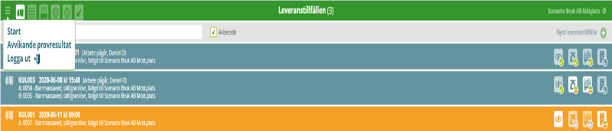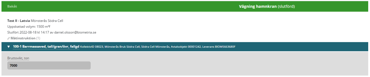 Gå tillbaka till översiktsvyn på aktuell mätplats (via hamburgermenyn) och slutför vägningen på det leveranstillfälle som skapats.