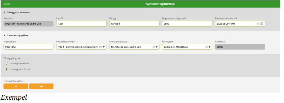Skapa lossningstillfälle