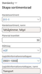 1. Lägg till aktuellt Handelssortiment/sortimentkategori.