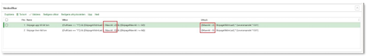 Om du i stället vill att villkoret ska jämföra två värden som finns på leveransen, till exempel att villkoret ska falla ut om ekipagets vikt med last är större än den tillåtna maxvikten (vilken kan variera beroende på ekipage och bärighetsklass) + 1 ton, markerar du EkipageViktmLast