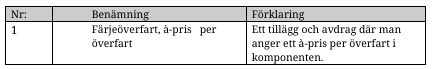 Tilläggs och avdragskomponenter kopplad till transportresurs
