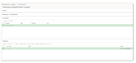 Användaren önskar att ge ett tillägg på 5% på grundpriset för transporter som sker i transportområdet ”Småland”. Transportområde ”Skåne” ger ett tillägg på 2% på grundpriset.