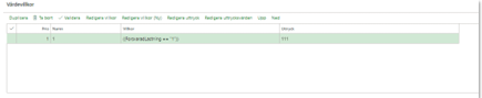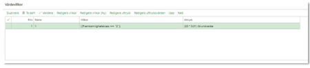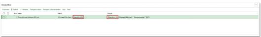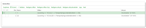 För att ange toleransen i villkor måste ”Redigera villkor” användas. Villkor ska anges med decimal-punkt, ej decimal-komma.