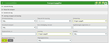 - Slutplats: Ange kod för den mottagningsplats där transporten avslutas.
