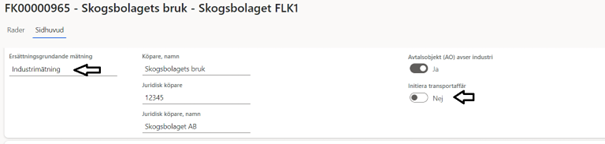 När du sätter upp förstaledskontraktet ska du välja ersättningsgrundande mätning ”industrimätning” och initiera transportaffär ”nej”. Inga transportuppgifter kommer samlas in om utförande transportföretag eller registreringsnummer. I RH ska det vara transportslag ”vägtransport”