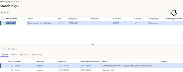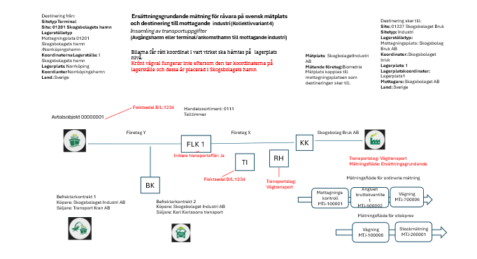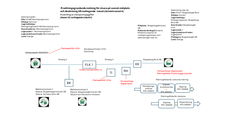 Nedan syns det vilket mätningsflöde samt mätningstjänster och annan platsstruktur. Befraktarkontrakt behöver sättas upp för transportsedel.