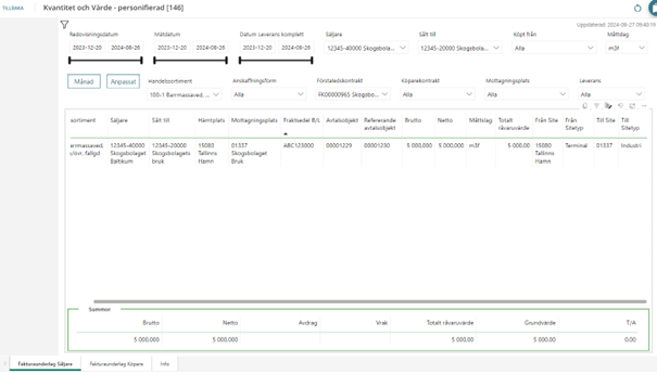Rapport Kvantitet och värde personifierad 146 - är en anpassningsbar rapport efter hur Aktör själv önskar utredovisa de kvantitet och värden som har t.ex. Transportslag Sjötransport.