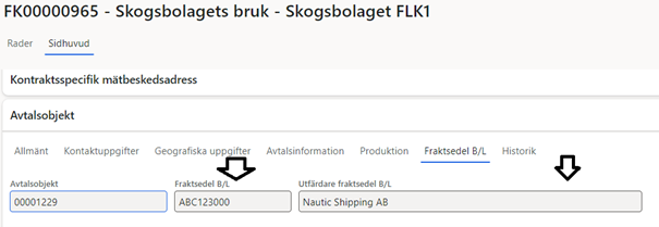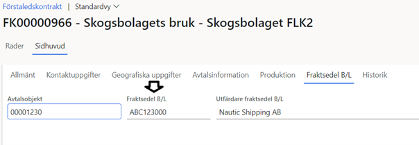 Du uppger ingen fraktsedel B/L identitet när du skapar transportsedel utan det är viktigt att uppge rätt avtalsobjekt som kostnaden ska kopplas till.