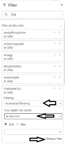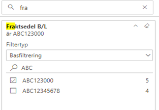 Vill du sortera ett steg till kan du lägga till innehåller och mer specifik Fraktsedel B/L (Bild 3)
