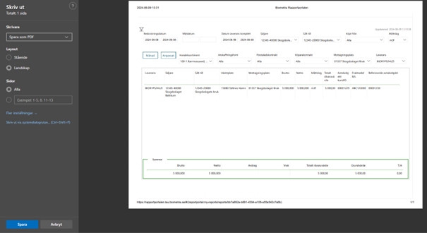 Det går även att skriva ut (Print to PDF) eller spara ner den i din dator som en PDF fil direkt från Rapportportalen.