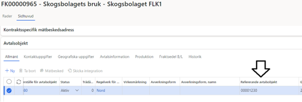 Du behöver sätta avtalsobjektet i status ”Aktiv” som ska vara det refererade avtalsobjektet (Bild 6).