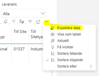 Önskar man exportera datat till Excel så finns funktionalitet till det enligt nedan.
