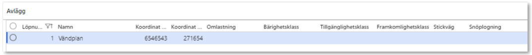 När ett avlägg är markerat, kommer det om det finns en, att visas den vägnätsanslutning som hämtats från aktuellt avlägg.