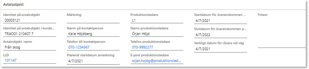 Information som hämtas från avtalsobjektet.