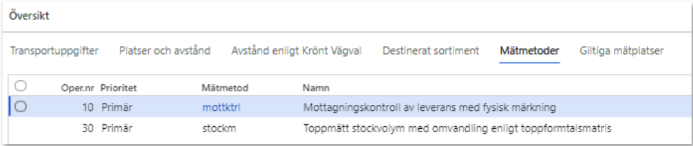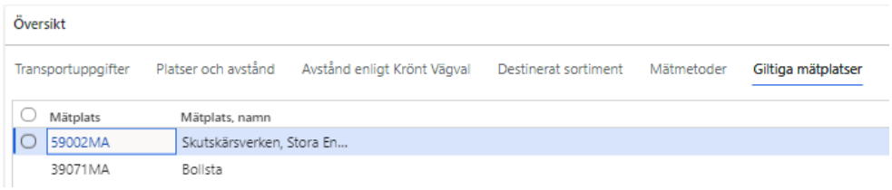 Informerar om vilka mätplatser som är giltiga att mäta in råvaran på. Transportinstruktionen ses inte som en transportorder utan en instruktion om hur transporten kan utföras. Det finns alltså inte i transportinstruktionen möjlighet att sätta prioritet på mätplatser. Det måste skötas i kundernas egna system. Observera att giltiga mätplatser inte integreras ut i transportinstruktion, det visas endast i affärsnavet. Tanken är att de användarskapade transportunderlagen som finns på transportinstruktionen ska berätta vilka mätplatser som chaufförerna ska köra till.