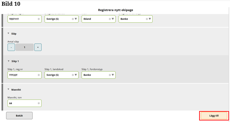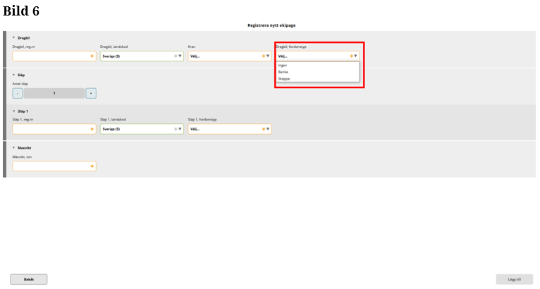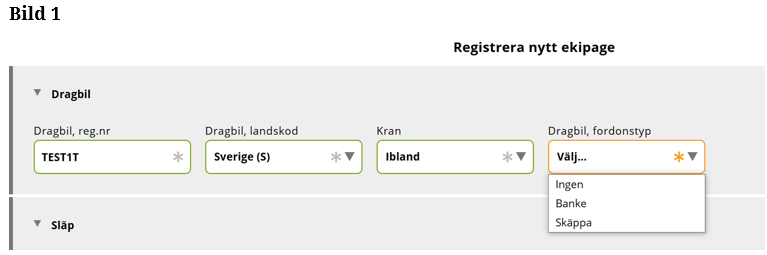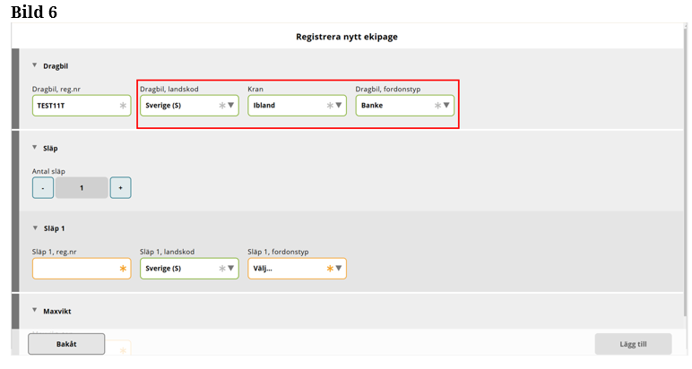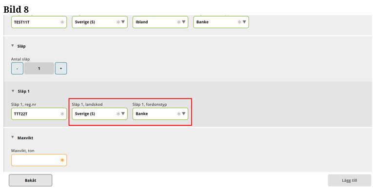 Fyll i fordonstyp på Släp 1. (Bild 11)
