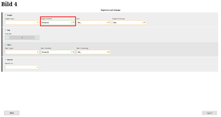 Fyll i landskod på dragbilen. (Bild 4)