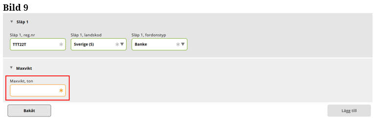 Fyll i ditt registreringsnummer på släp 1. (Bild 9)