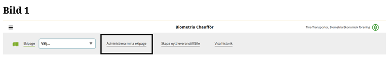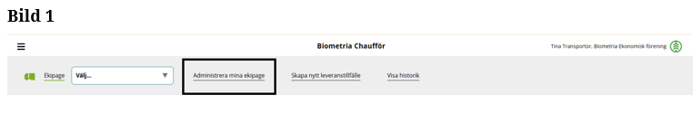 ”Klicka” på Administrera mina ekipage. (Bild 1)